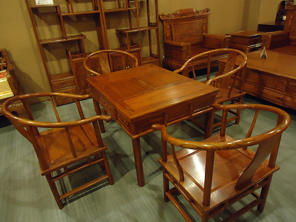 (3)種類的多樣化。現代新做的紅木古典家具已不再局限在家庭生活里使用,而是以全新的功能樣式去征服現代辦公空間、賓館客房、餐廳酒吧等新領域,從而實現紅木家具種類的多樣化和功能多樣化。
