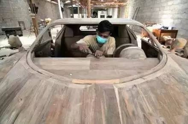 還有一位小伙子,為了追上自己心愛的白富美,也為了討好未來的丈母娘,竟然瞞著他們自己親手用紅木造起布加迪威航。