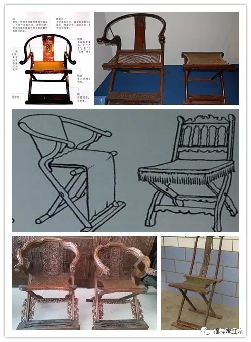 明式交椅承襲元代交椅的形制,有圓后背交椅與直后背交椅之分,用材以黃花梨為貴。由于清代居室中有許多種豪華、舒適的椅式,交椅有失風(fēng)雅,遂逐漸減少了。清代宮廷中也有交椅,但僅作為鹵簿儀杖中的器物使用,制作精致,雕飾繁縟,華麗富貴,只是偶爾使用。(下圖就是各個時期交椅的圖片,可以觀賞一下)