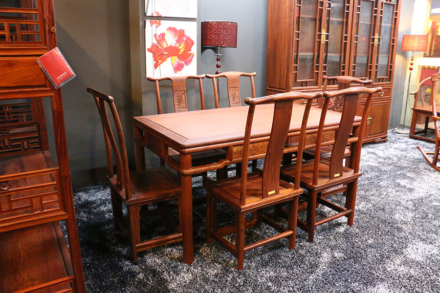 八、新紅木家具有時(shí)會(huì)突發(fā)嘣嘣的響聲,響聲是由于家具面板縮短而引發(fā)的正常現(xiàn)象。